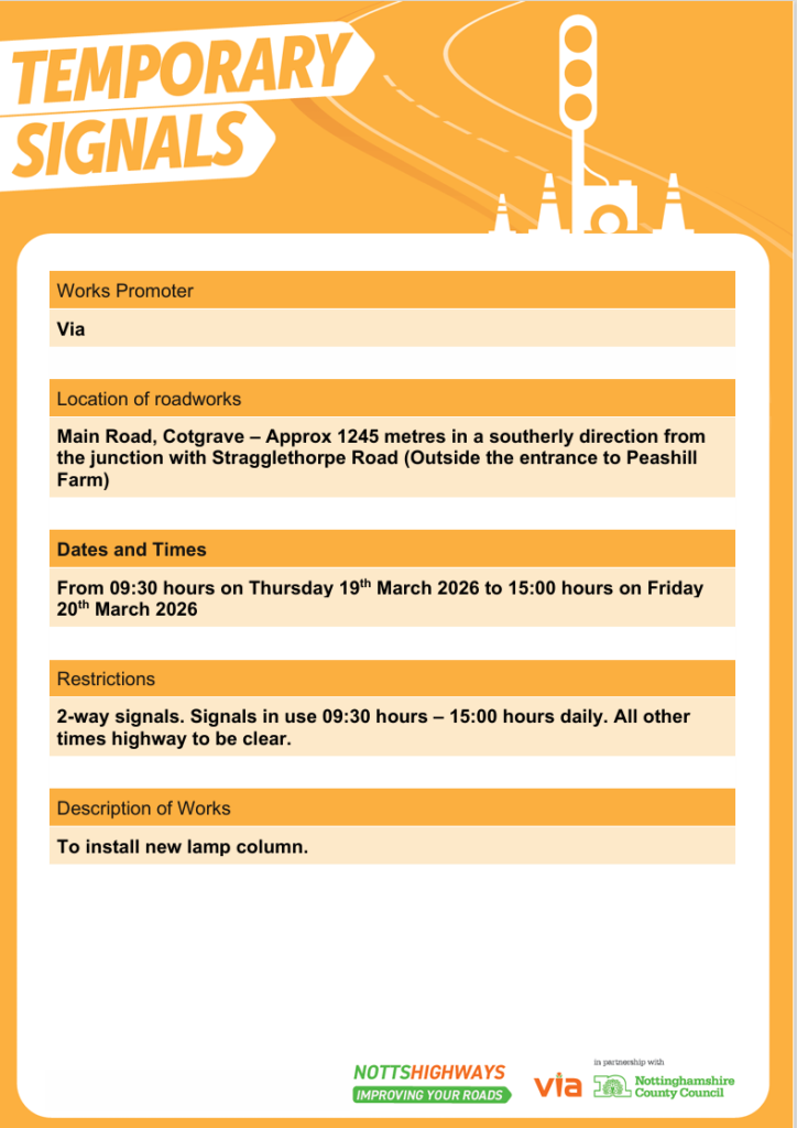 Main Road, Cotgrave – approx 1245 metres in a southerly direction from the junction with Stragglethorpe Road (outside the entrance to Peashill Farm).by Jane PickMarch 10, 2026March 10, 2026