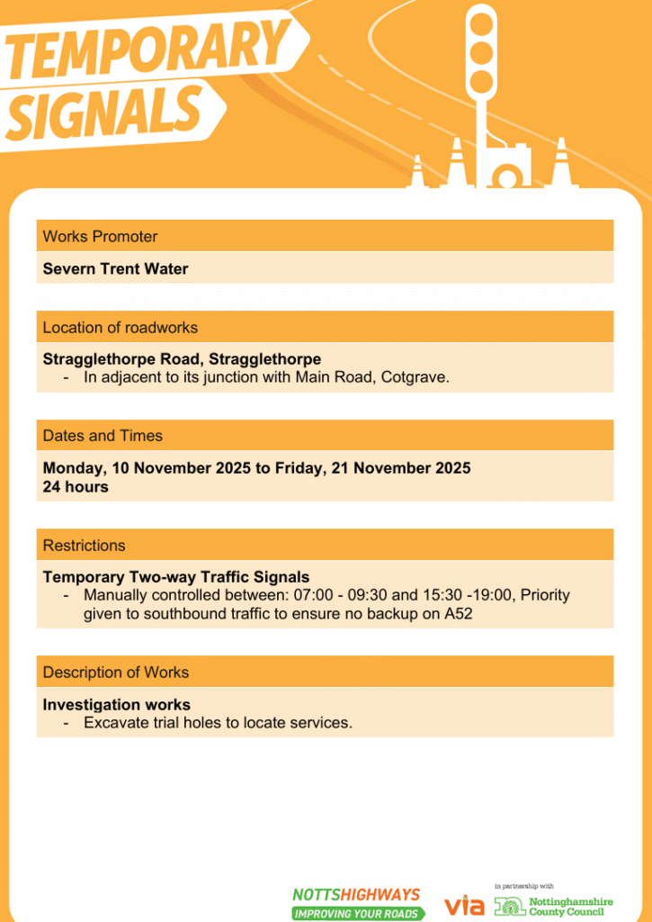Temporary Signals – Stragglethorpe Road – adjacent to its junction with Main Road, Cotgraveby Jane PickOctober 23, 2025October 23, 2025